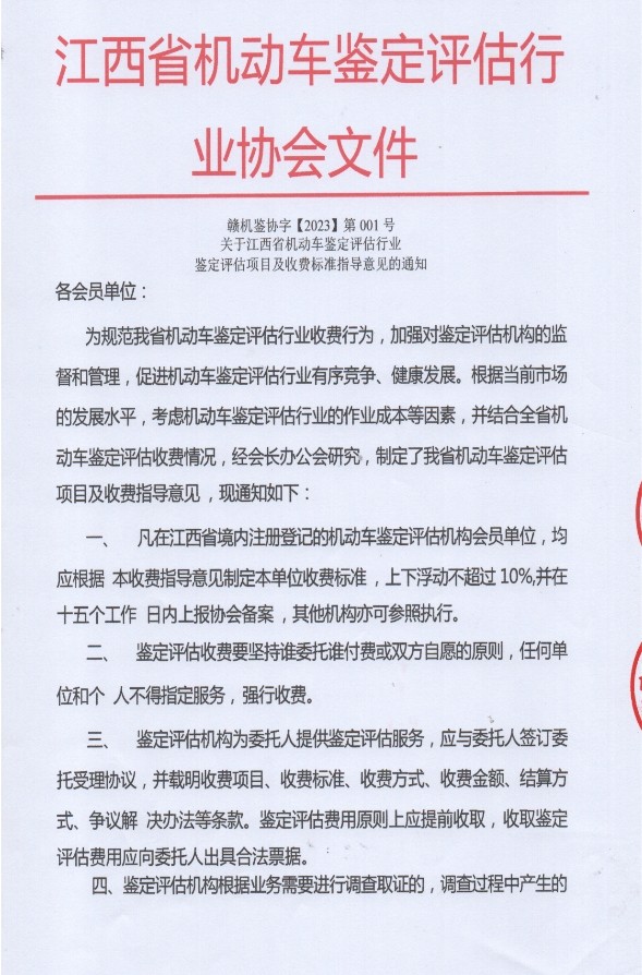 江西省机动车鉴定评估行业协会发布《鉴定评估项目收费标准指导意见》