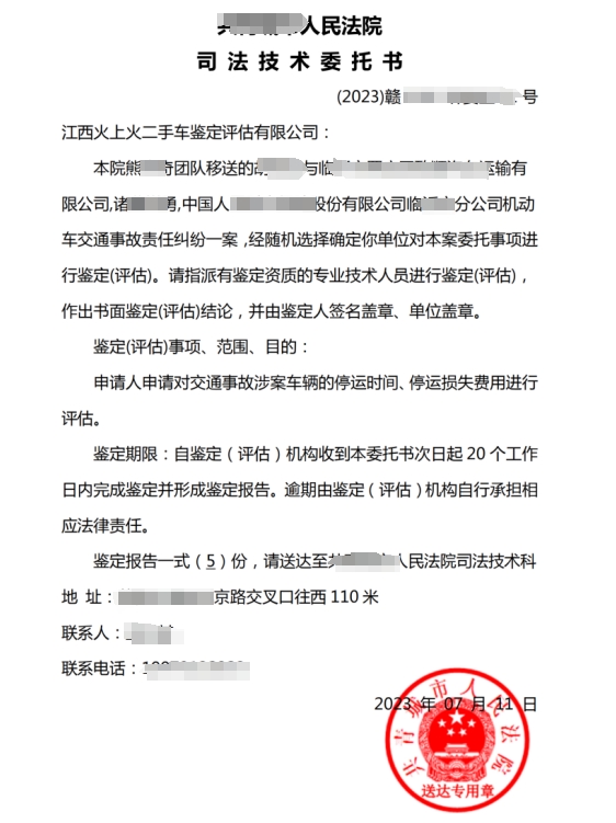 2、营运车辆停运损失鉴定评估:对营运车辆停运的损失进行鉴定,为法院及事故双方处理矛盾提供法律证据。
